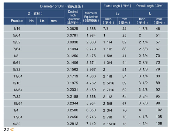 鉆頭系列ANSI B94.11M